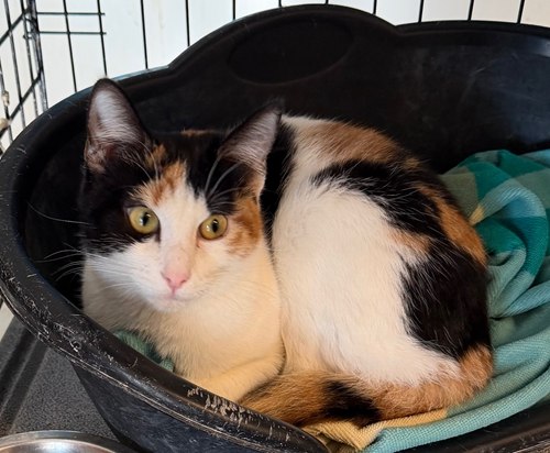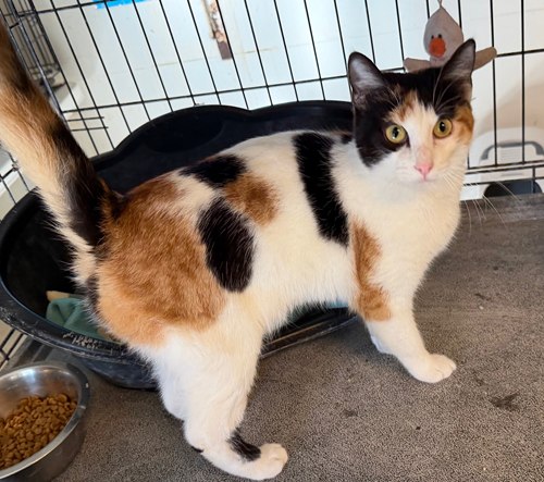 Très jolie jeune chatte née au printemps 2025. Très calîne.